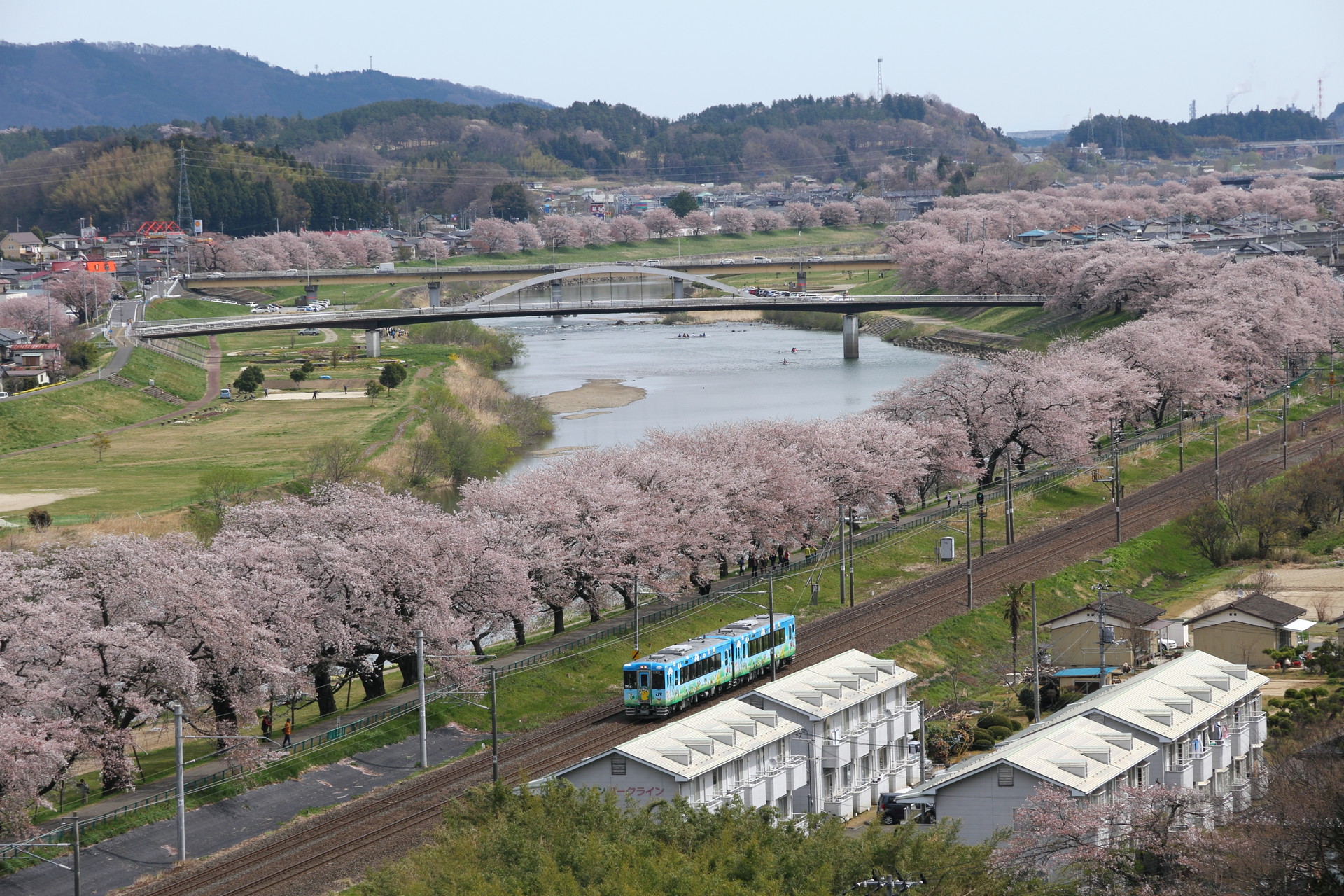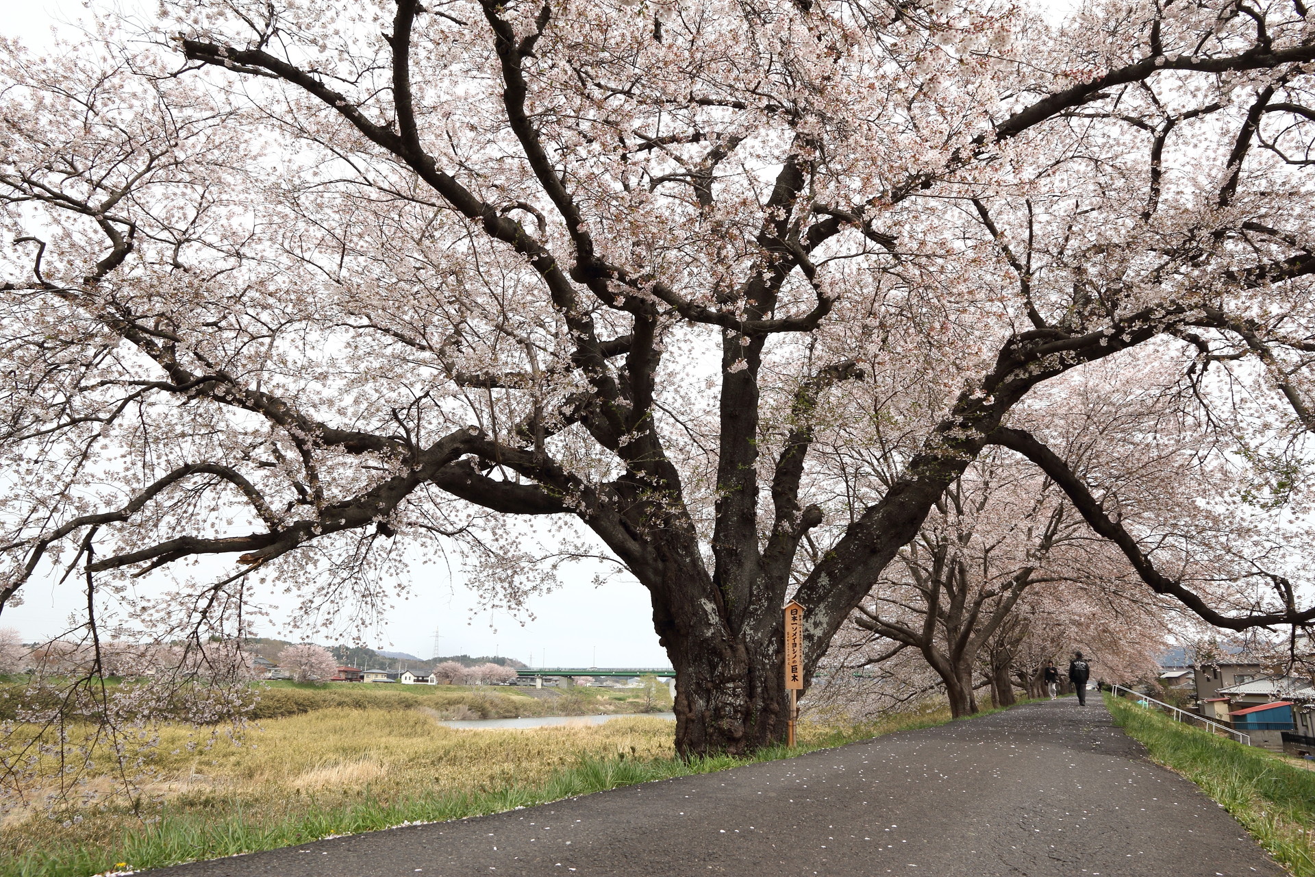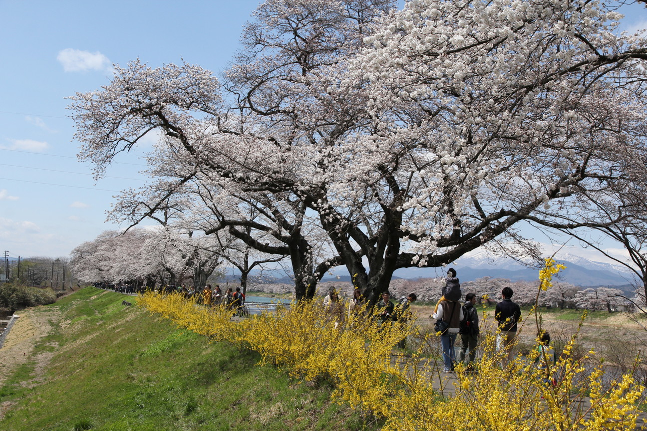 白石川堤に大河原町から隣の柴田町まで約8kmにわたり続く桜並木は、