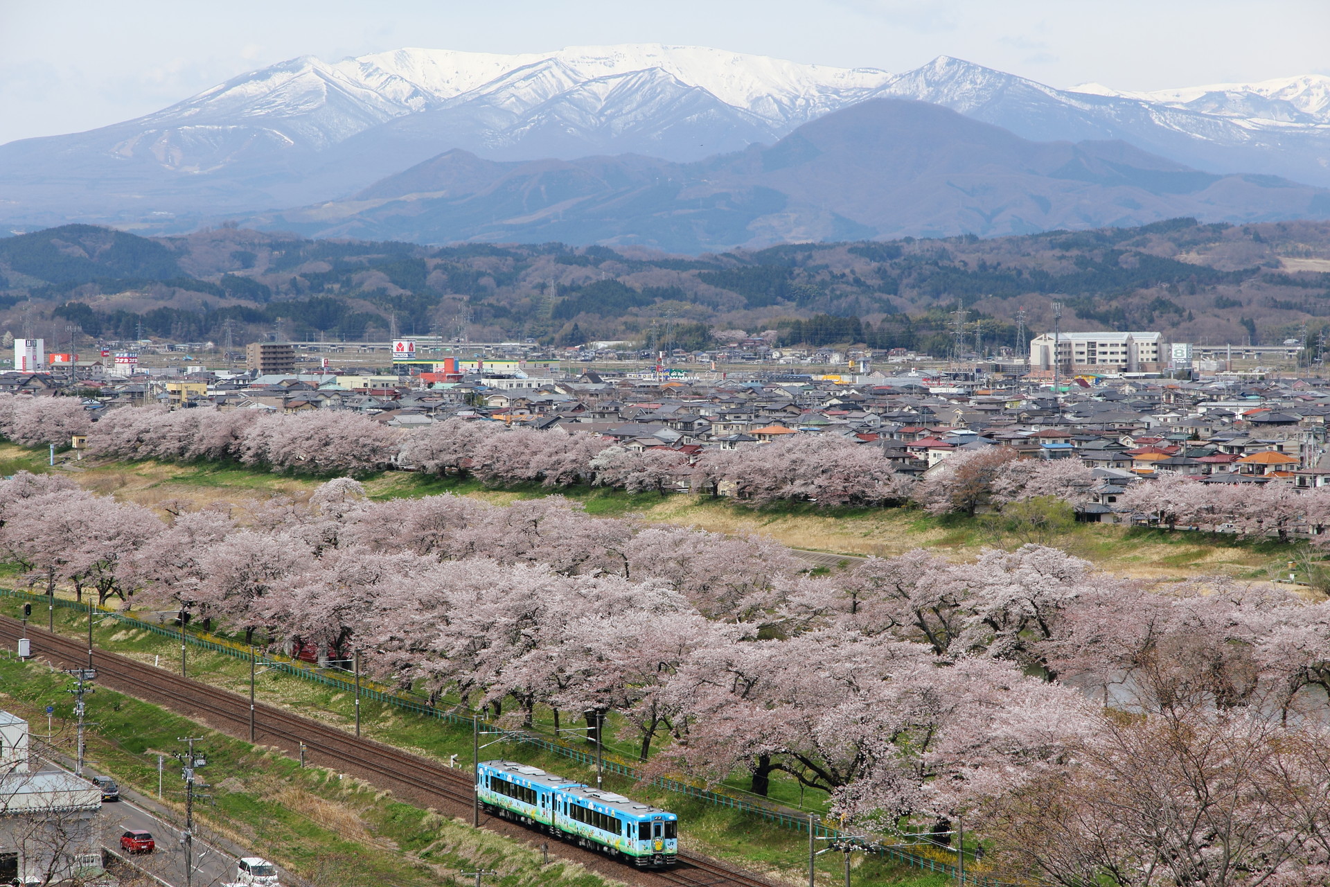 「残雪の蔵王連峰と一目千本桜」EOS60D・EF-S15-85mm・46mm・F8 ・1/200秒・ISO-100・PLフィルター使用